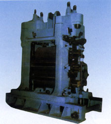 | 一.用途 用于将4",6",8"10"钢锭轧成各种规格的钢坯或型材. 二.设备组成 由主电机.主减速机.人字齿轮机座和一架或几架轧机组成.(下列轧机是安装于轧钢车间中的主机列.本厂还可以根据用户需要配套推钢机.移钢机.辊道.升降台.冷床.剪断机等各种辅助设备.) |